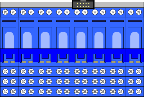 Внешние цепи подключатся непосредственно к контактам колодок реле Finder.