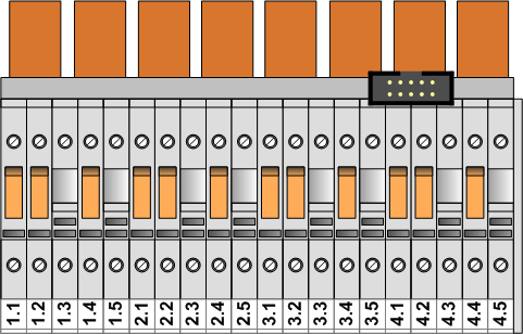 Разрывные клеммы модуля позволяют организовать видимый разрыв индивидуальных внешних цепей.