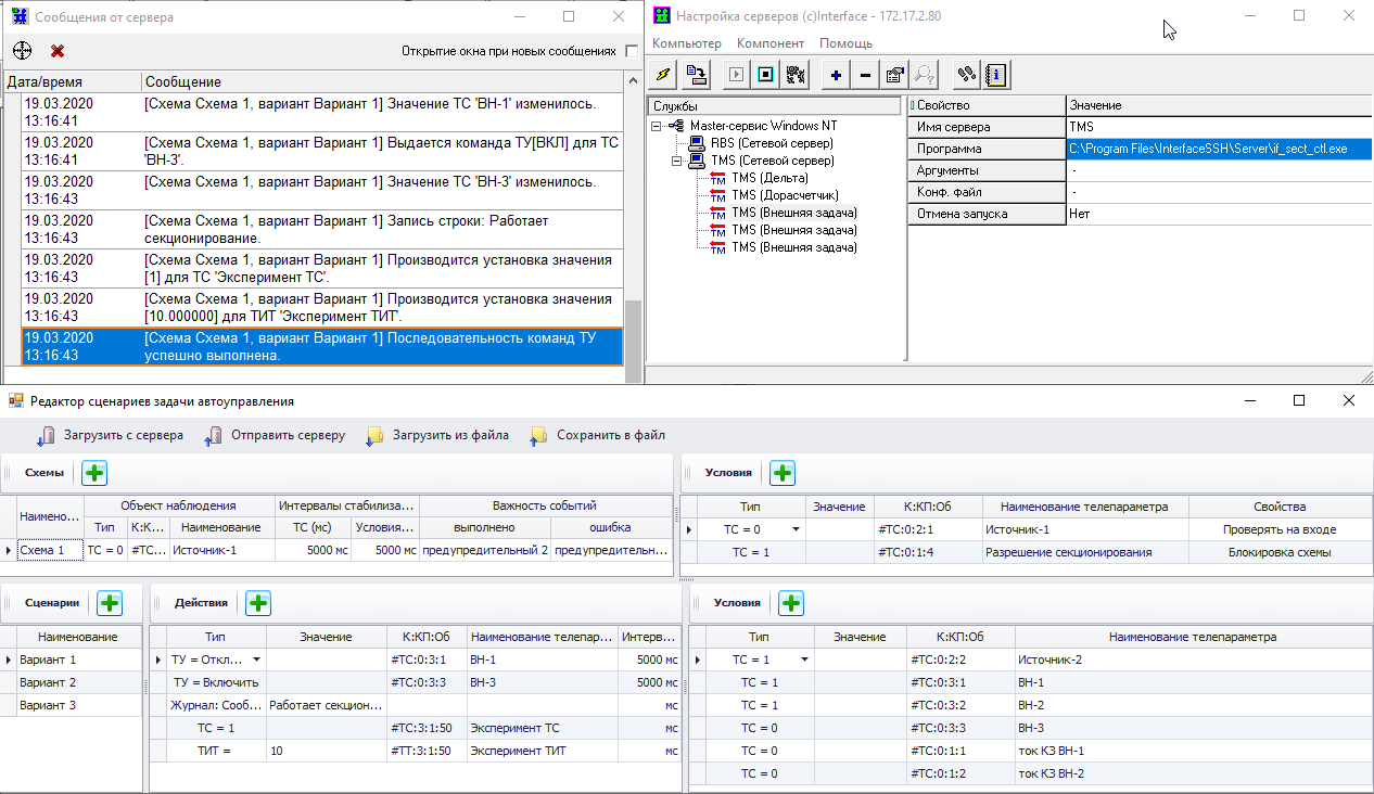Если условия заданных сценариев совпадают, то задача перейдет к выдаче последовательности управляющих воздействий. Все действия задачи отображаются в отдельном журнале и журнале событий ПО клиента, что позволяет проверить полную цепочку автоматических действий.