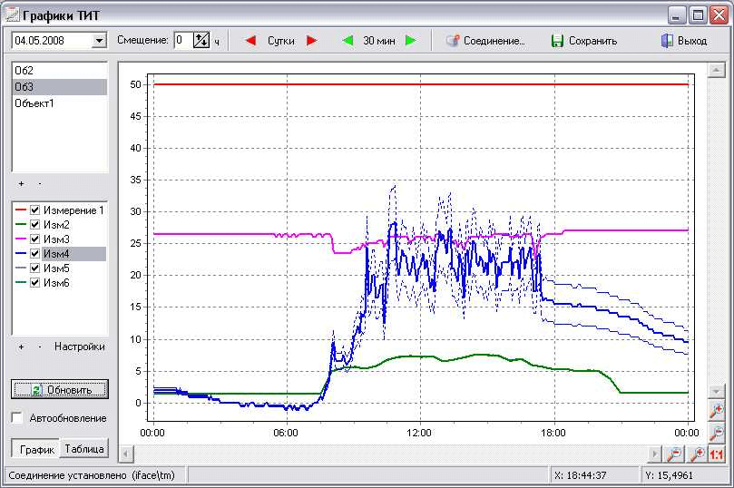 Программа по умолчанию выводит список всех измерений сервера, с указанием количества привязанных к измерению уставок.