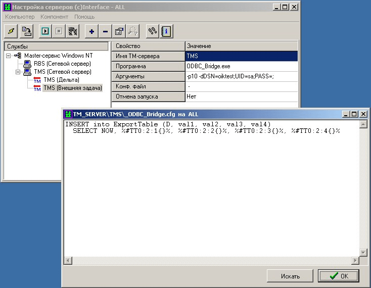 Разработана программа ODBCBridge для двустороннего обмена телеметрической информацией между сервером ТМ и ODBC-совместимой базой данных. Программа работает как внешняя задача под сервером телемеханики.