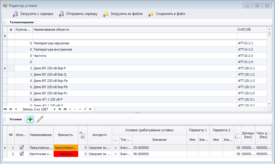 Обратите внимание, редактор уставок работает только с сервером «ОИК Диспетчер НТ» версии 2.2 и выше.