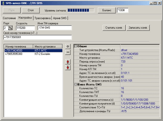 Программа служит для организации обмена телеметрией сервера «ОИК Диспетчер НТ» с устройствами телемеханики по каналам операторов связи с помощью SMS-сообщений или с использованием технологии GPRS/EDGE.