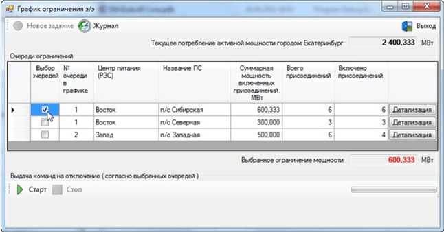 В ходе работы диспетчер выбирает один из графиков и одну или несколько очередей отключения для данного графика, запуская процесс отключения коммутационных аппаратов. Результат работы записывается в журнал.