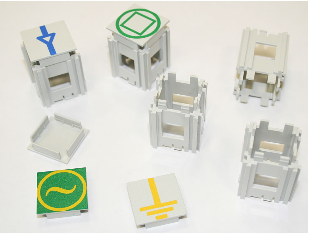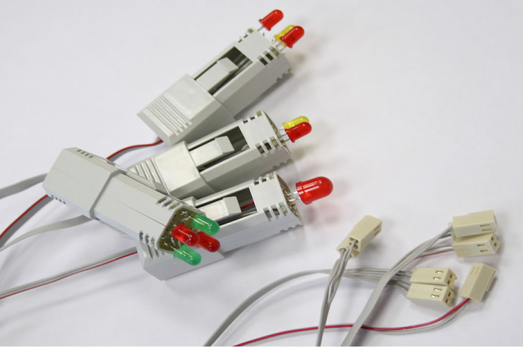 Модуль состоит из фишки с рисунком и отверстиями под светодиоды. Допускается размещать до девяти светодиодов на одной фишке (три ряда по три светодиода с шагом 6 мм). Светодиоды размещаются в кассете с фиксаторами для крепления в ячейке щита. Кассета поставляется с соединительным кабелем 1,5 м с разъемом для подключения к локальному контроллеру. Все применяемые светодиоды имеют нормированные яркость свечения и угол обзора.