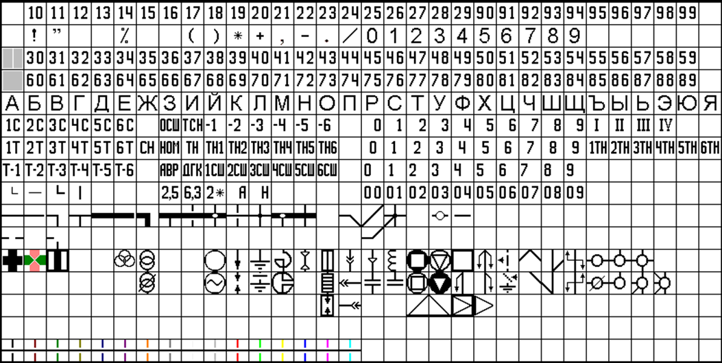 Для надписей на фишках можно использовать символы русского и латинского алфавита. Для крупных надписей одна буква занимает одну фишку. Для мелких надписей применяется специальная фишка, состоящая их двух разборных половинок, на каждую из которых наносится отдельный символ.