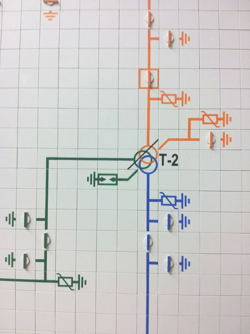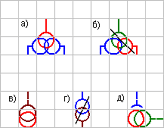 На рисунках ниже приведены примеры поворотных элементов для выключателя и разъединителя, а также пример размещения элементов на щите.