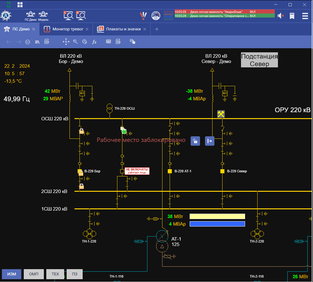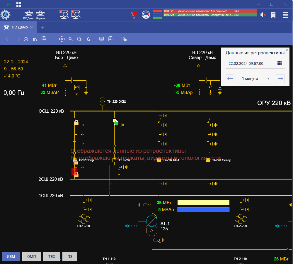 Просмотр оперативных схем и SVG с данными из ретроспективы