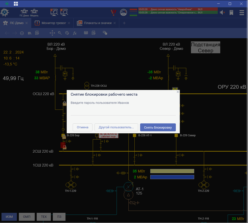 Реализован функционал блокировки рабочего места оператора. В заблокированном режиме остаются открытыми основное и дополнительные окна программы.