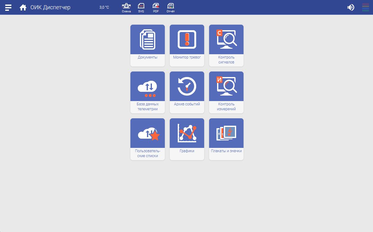 Реализована статичная верхняя панель для оперативных схем Модус и SVG-картинок. На панели располагаются кнопки быстрого доступа к большинству функций, масштабирование схемы, поиск и т.п.