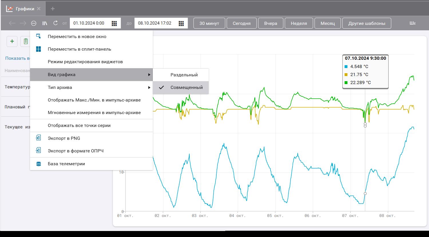 - Добавлен режим отображения графиков на одной системе координат (совмещенный режим);