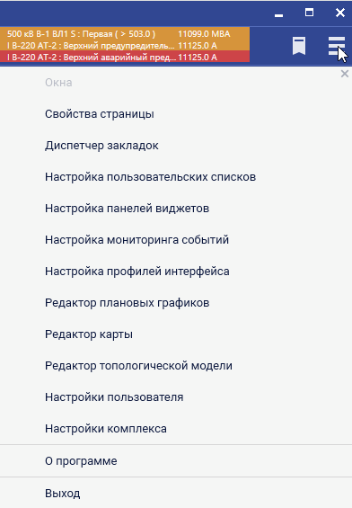 Открывает окно настройки панели виджетов. Подробное описание настройки в 6.3.4