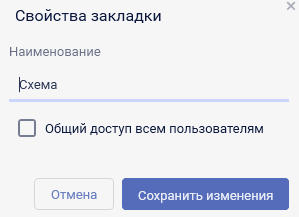 Редактировать свойства закладки. Изменение имени закладки, предоставление возможности использования закладки всеми пользователями комплекса;