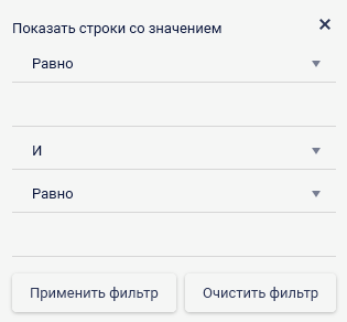К каждому столбцу можно применить уникальный фильтр, подробное описание фильтров представлено в таблице: