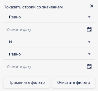 Сброс условий фильтра осуществляется при помощи кнопки "Очистить фильтр".