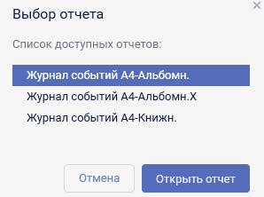 После нажатия на копку в появившемся меню необходимо выбрать тип отчета, после формирования отчета инструмент позволяет отправить полученную информацию на печать, сохранить в формате pdf, excel и.т.д