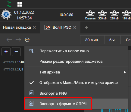 Для предоставления ранее запрошенных данных в текстовом файле формата CSV в соответствии с документом «Методика мониторинга и анализа участия в ОПРЧ утв. 07.10.2021, Приложение 1», необходимо произвести их экспорт в формате ОПРЧ: