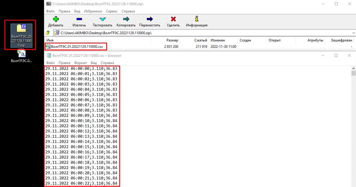 При сохранении файла будет создан zip-архив надлежащего формата содержащий в себе файлы формата CSV по каждому объекту генерации: