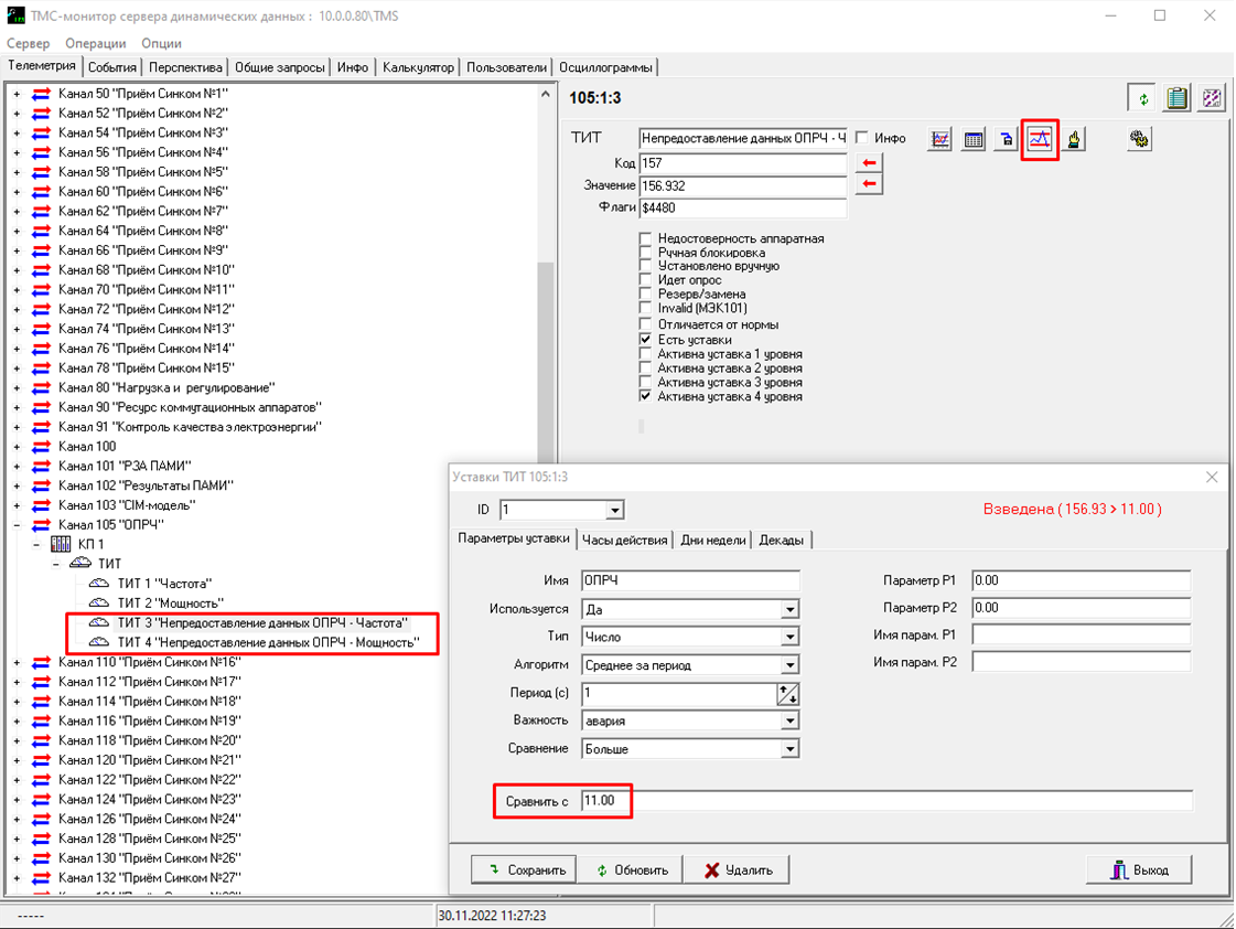 Далее в ТМС-мониторе сервера для данных ТИТ настраивается необходимая уставка.