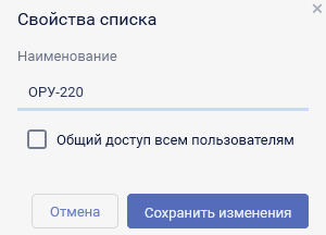 Редактировать свойства списка. Изменение имени списка, предоставление возможности использования списка всеми пользователями комплекса;