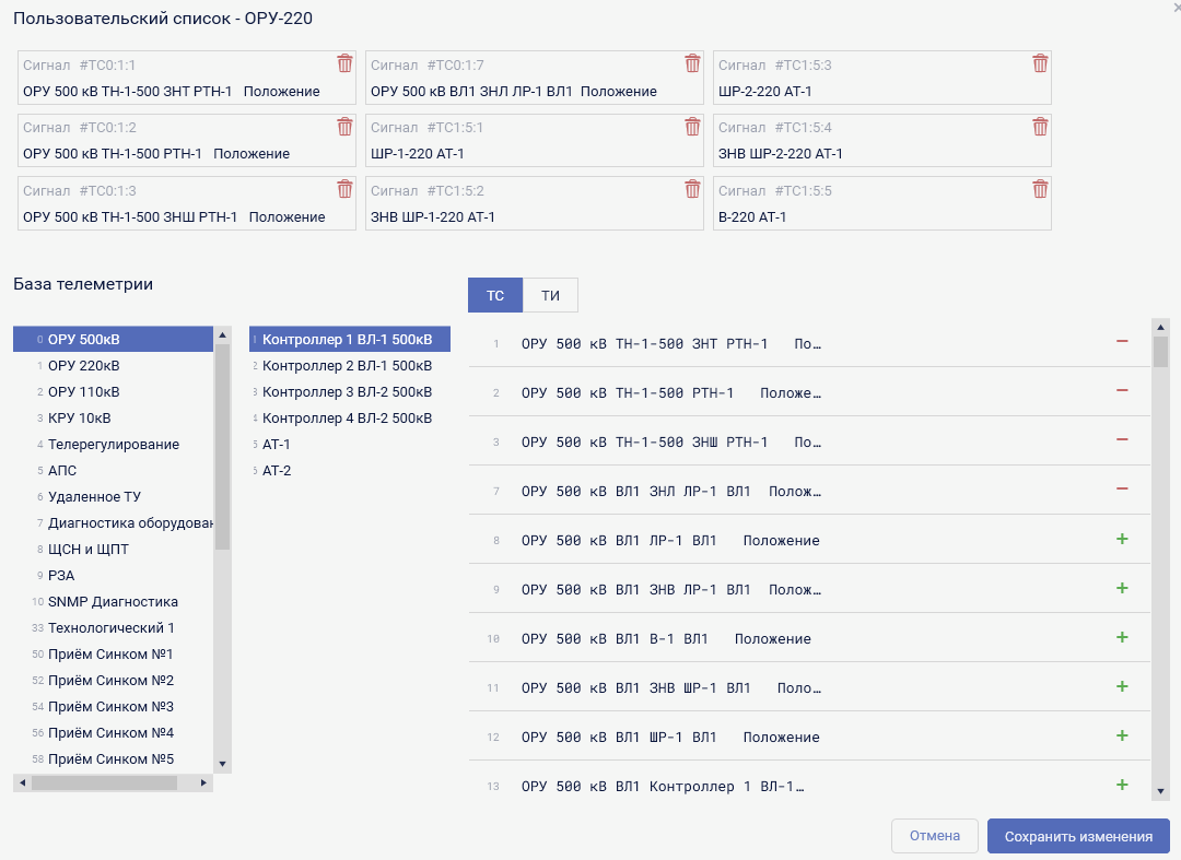 Пользовательский список - это набор параметров базы данных сервера (ТС, ТИТ, ТИИ) объединенные пользователем в группу для возможности групповых действий с параметрами (вывод всех параметров на графики, запрос архивов, отчетов).