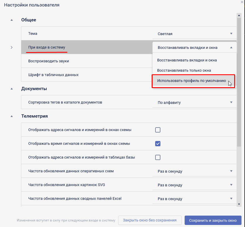 Галочка «По умолчанию» необходима при использовании выбранного шаблона при старте ПО — после настройки данной галочки, необходимо зайти в «Настройки пользователей» и выбрать вариант «При входе в систему».