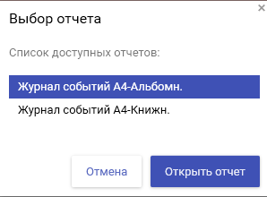 Такой вызов позволяет представить информацию в удобной для печати форме. В этом случае пользователю будет предложено выбрать отчет заранее из списка подходящих для текущей страницы отчетов. (Добавить скрин с вызовом отчетов из ЖС)