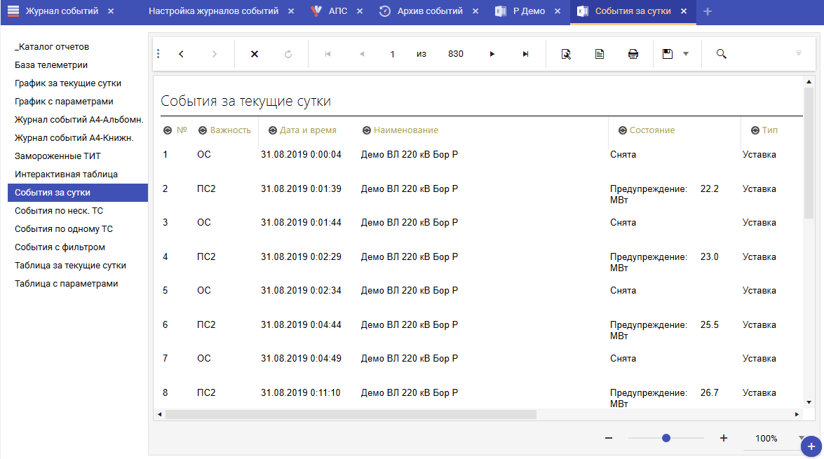 Также "Отчеты Telerik" могут вызываться из других страниц, например из "Журнала событий/Архив событий" или "Базы телеметрии".