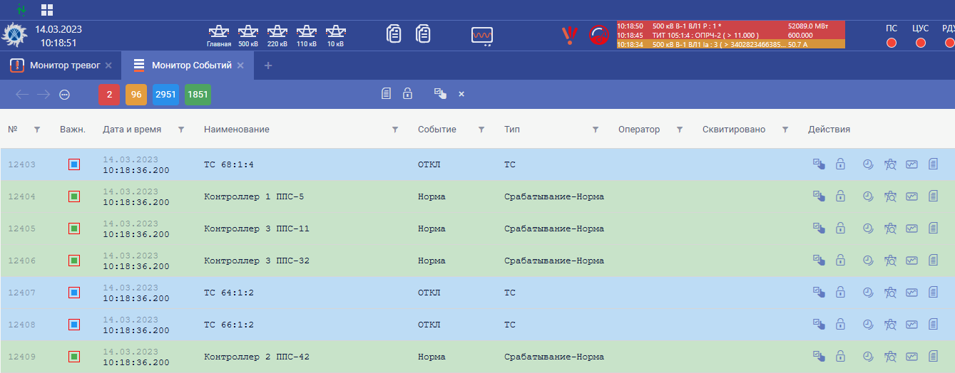 8. Отображение событий, оперативных действий и состояний