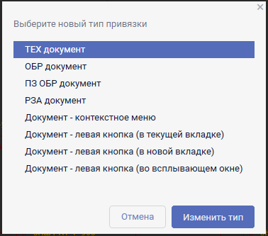 Тип "Документ - контекстное меню" позволит осуществить открытие документа из контекстного меню.