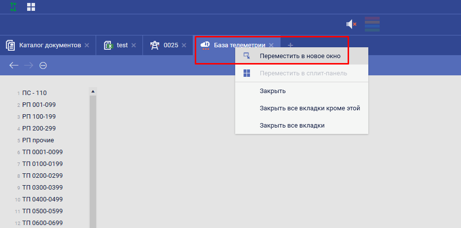 открыть окно базы телеметрии, затем открыть базу в новом окне