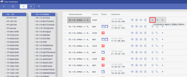 далее, в окне базы телеметрии выбирается необходимый телепараметр и копируется в буфер