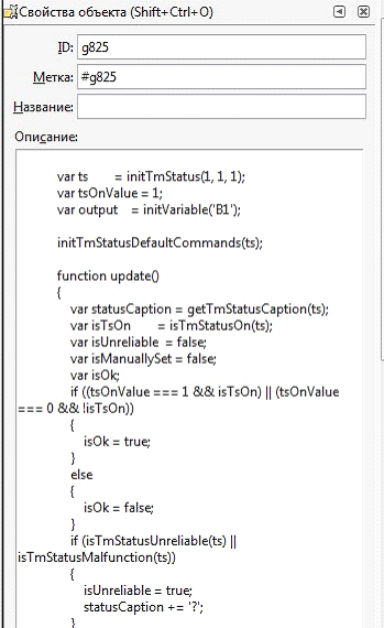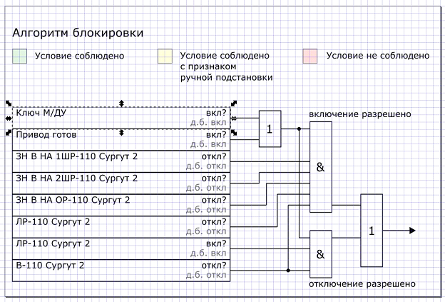 С помощью инструмента Текст (см выше) меняем название, указываем состояние выключателя, которое соответствует разрешению управления.