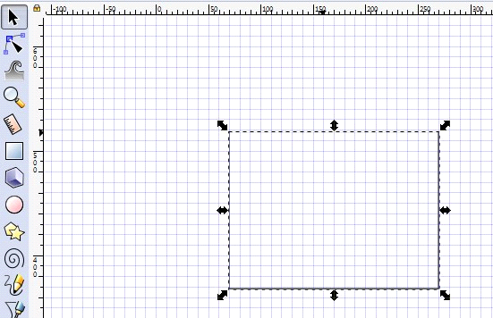 Для выделения объектов чаще всего в Inkscape используется инструмент выделения (селектор). Щелкните мышью по самой верхней кнопке на панели инструментов. Теперь щелкните по любому объекту на холсте. Вокруг объекта вы увидите восемь инверсных стрелок. Теперь можно перемещать объект, вращать его и изменять его размер.