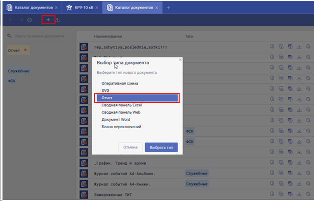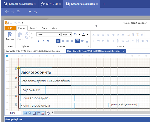 Для создания нового отчёта необходимо добавить новый документ и выбрать соответствующий тип. После создания наименования новый отчёт будет открыт в редакторе Telerik Report Designer