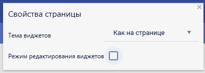 Открывает свойства страницы, в котором можно выбрать тему для всех виджетов добавленных на страницу.