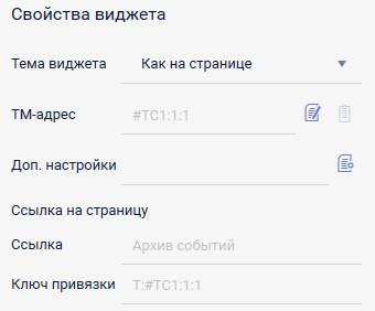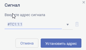 Для отображения состояния ТС необходимо произвести привязку. Для этого в окне свойств виджета - в строке ТМ-адрес необходимо нажать на кнопку и в появившемся окне ввести адрес в формате #ТСКанал:КП:Объект(пример: #ТС1:1:1)