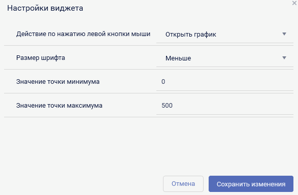 - открыть график. При нажатии на виджет будет открыт инструмент отображения графиков с выбранным параметром;