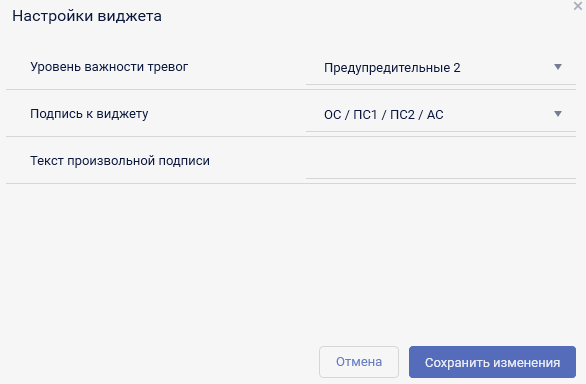 Уровень важности тревог. Определяет взведенные тревоги какого уровня важностибудут вызывать индикацию виджета;