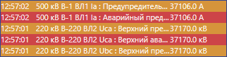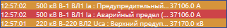 Отображение информации об отличающихся от нормы режима телеизмерений, переход на страницу контроля измерений с включенным фильтром несоотвествия нормальному режиму;