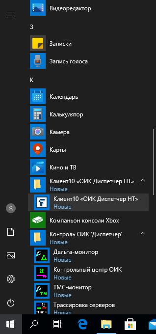 Из меню «Пуск» Windows запустить программу «Клиент10 «ОИК Диспетчер НТ» из одноименного каталога меню.