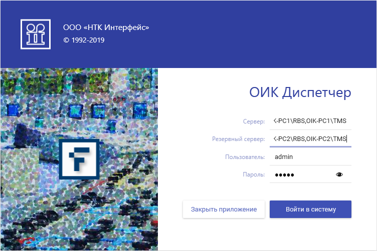 Имя пользователя и пароль настраиваются при конфигурировании подсистемы безопасности ПО сервер «ОИК Диспетчер НТ».