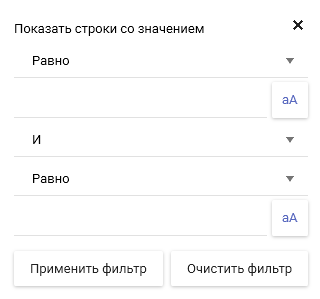 Возможно задать два условия отображаемых значение с использованием операторов "И" , "ИЛИ".
