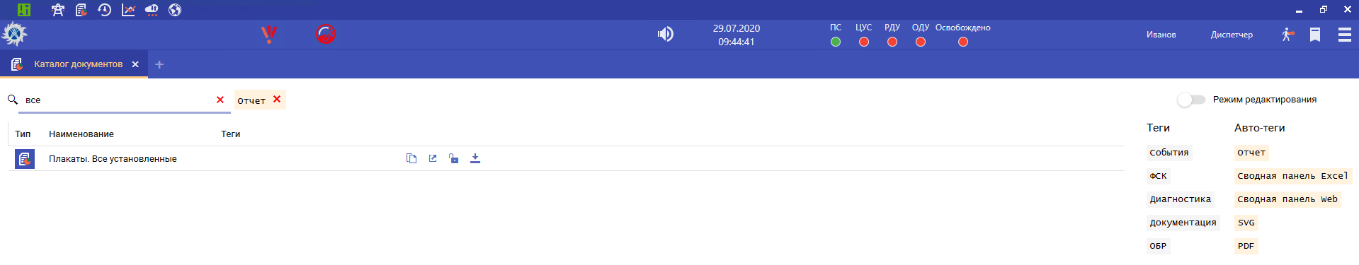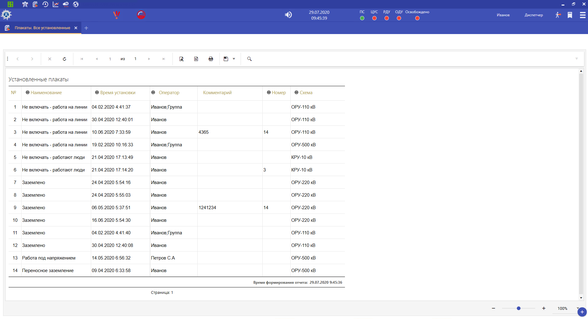 После выбора необходимого отчета, откроется форма со списком всех установленных плакатов.