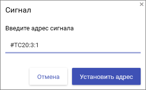 В появившемся окне ввести адрес телепараметра в формате #TCК:КП:Об, где К - Канал, КП, Об - Объект (параметры структуры ПО сервера).