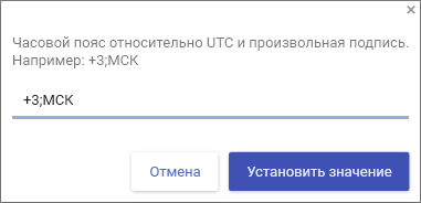В появившемся окне задать часовой пояс относительно UTC и через символ ";" произвольную подпись.