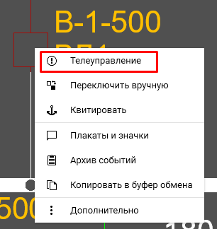 - установкой курсора мышки на рисунке объекта управления и нажатием ПКМ вызывается в контекстное меню, в котором выбирается пункт «Телеуправление»