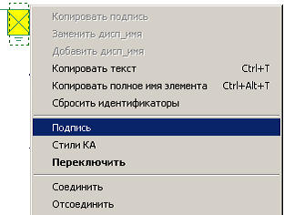 В редакторе Модус на оперативной схеме выделить элемент переносного заземления, ПКМ активировать контекстное меню, в котором выбрать строку ‘Подпись’ и настроить свойство, которое будет использоваться для ввода и отображения номера заземления (см. Рис. 7.36).
