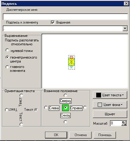 Рис. 7.36 Настройки подписи элемента Модус для переносных заземлений