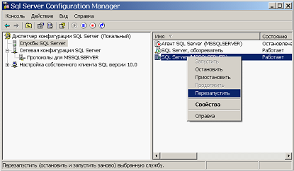 Рис. 4.23 Перезапуск службы «SQL Server»